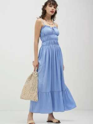 Красивое платье с воланами На талии резинка(пояс не входит в продажу) Платье цвета океан с брошью Брошь переливается...